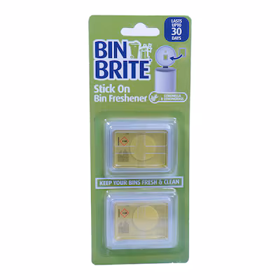 Upgrade your waste management routine with the Bin Brite Stick On Freshener Citrus Lemon. Experience the power of fresh citrus scents and say goodbye to smelly bins for good! Simple to use, effective, and long-lasting, this product is an essential for anyone looking to maintain a clean, fresh-smelling space. Get yours today and enjoy a fresher, cleaner environment!